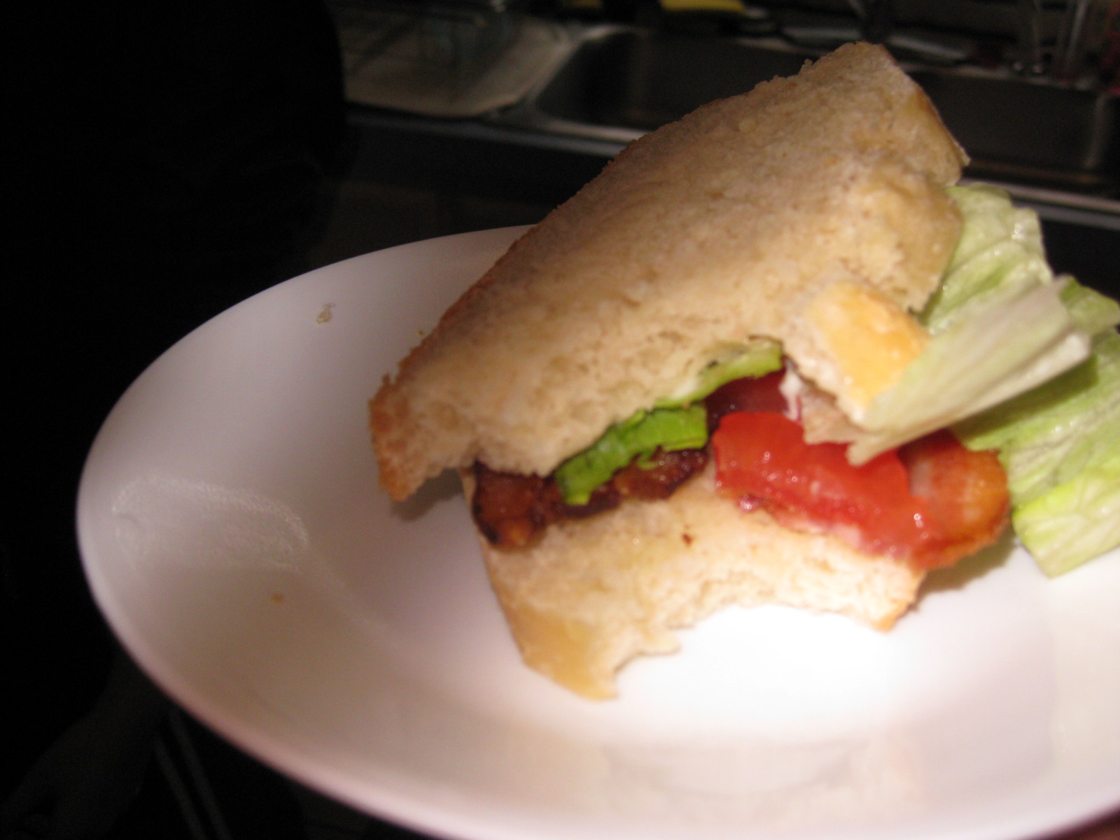 Made a couple of loaves of white bread today. I made the bread of top, the BLT is made with that bread in the middle, and the bottom pic is Grace’s bread — it has a crack because Grace didn’t score the bread. Her bread was more flavorful because she added more salt, sugar, and oil than I did.