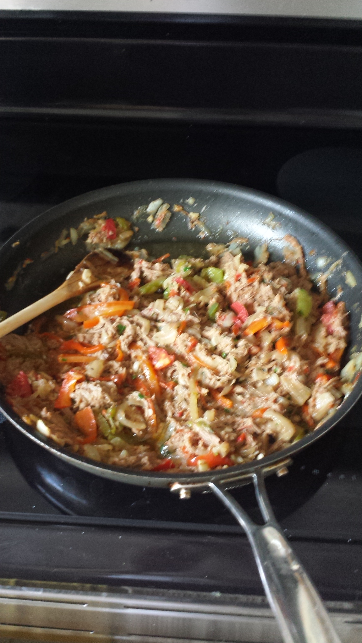3. Remove the pot from the heat, and remove all the big pieces of onion and bell peppers.