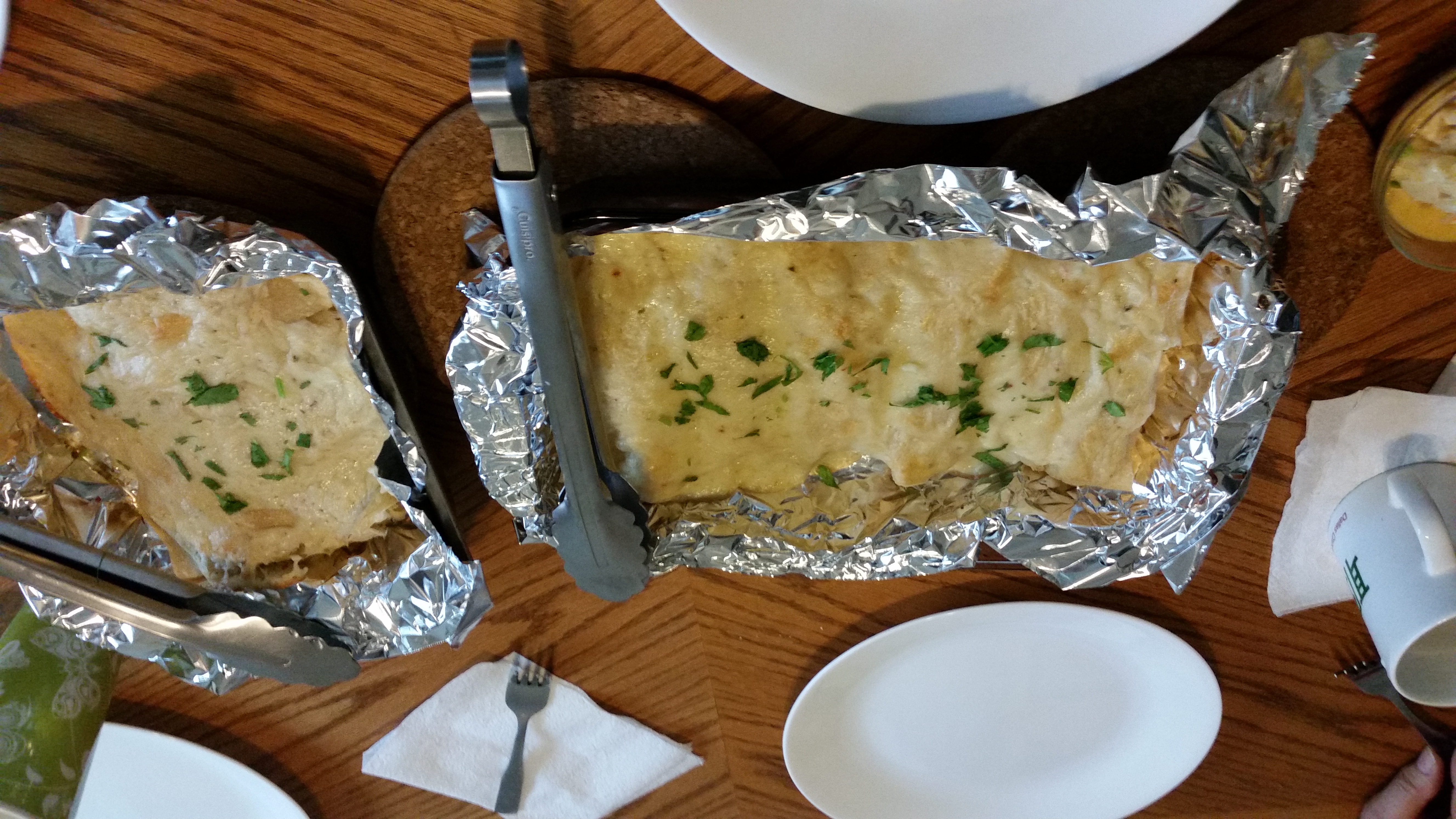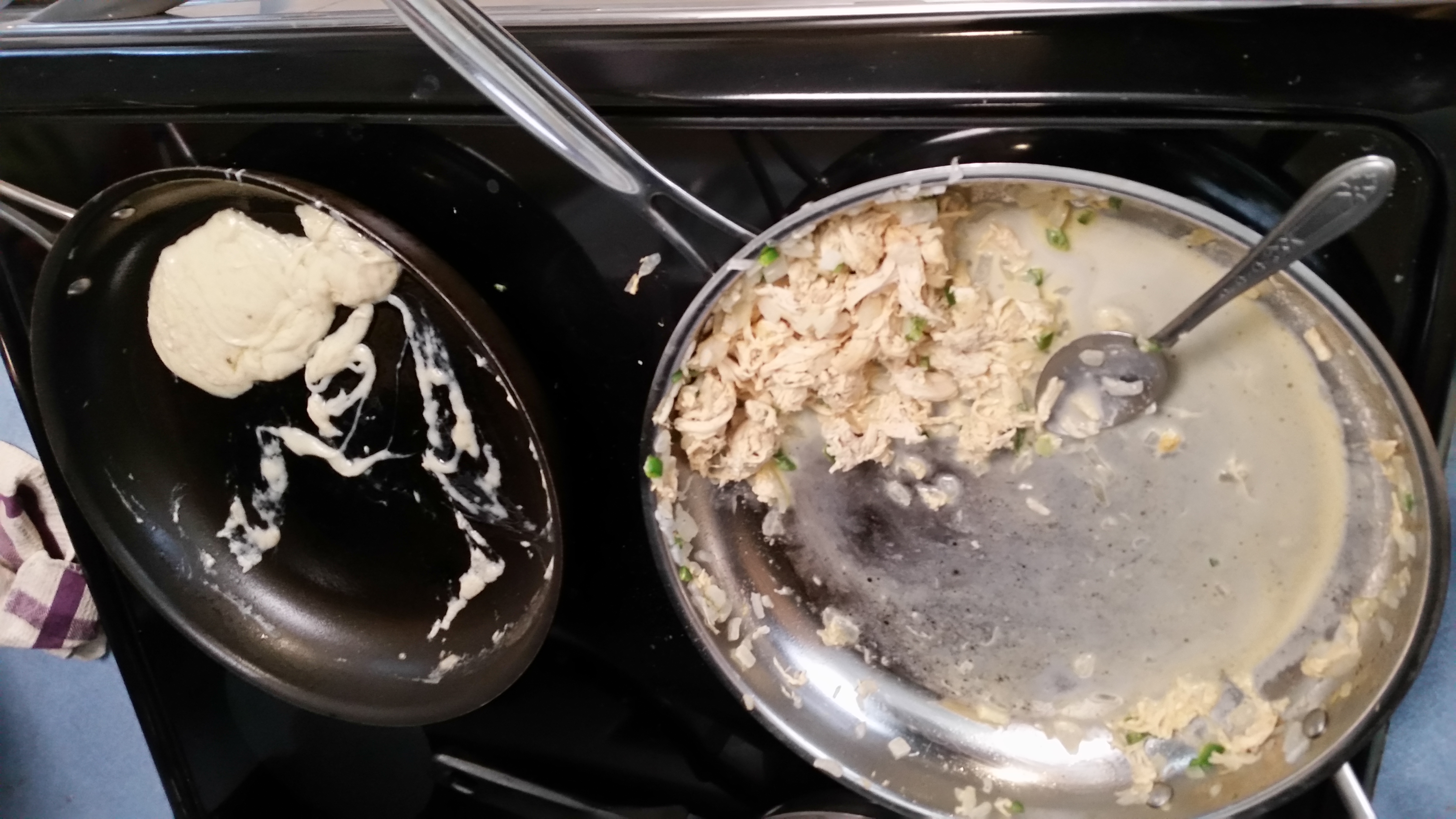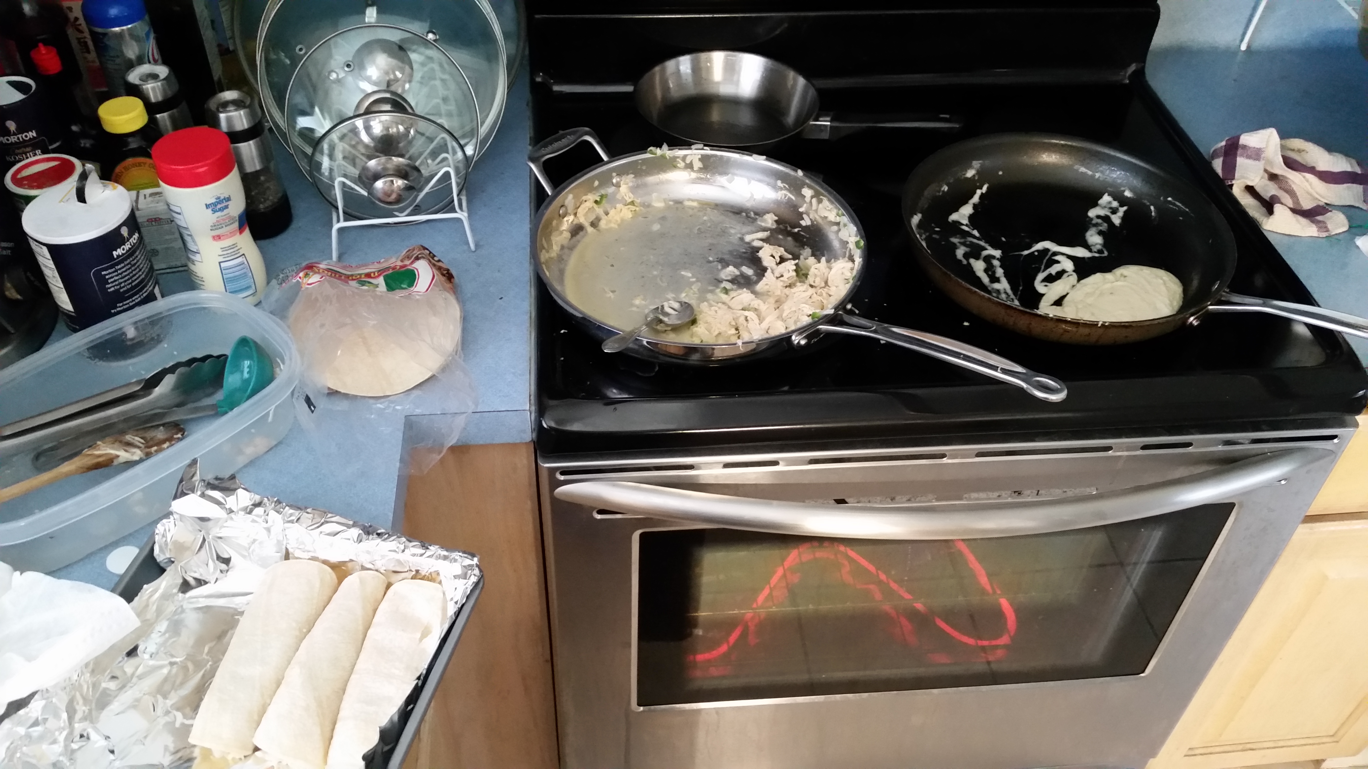 It tastes pretty good, but it was interesting to see just how unhealthy enchiladas are — the amount of cheese, butter, and cream that goes into this is deceptive.