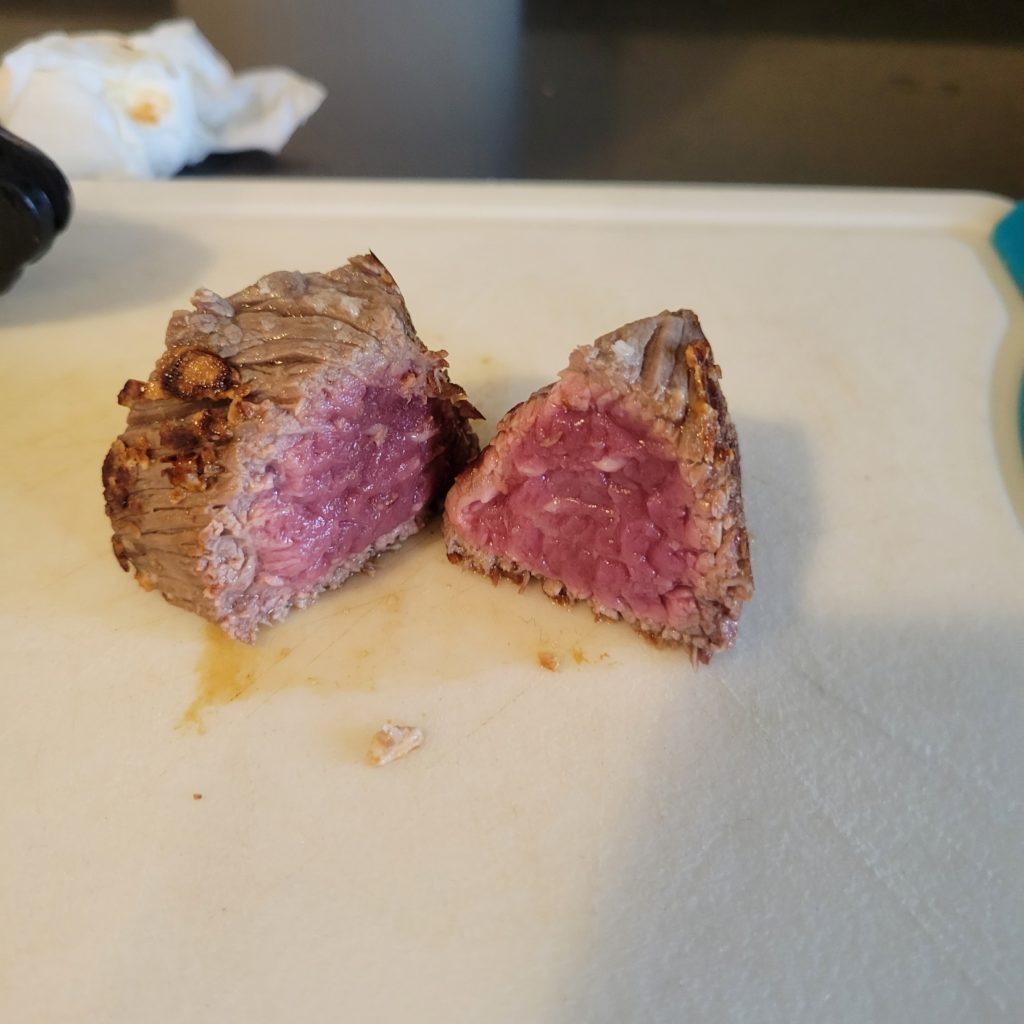 I like preparing this over a bed a garlic because when it is done cooking, you end up with beefy garlic butter that is soaked with savory beef fat. I’m not sure how it impact of the flavors of the beef.