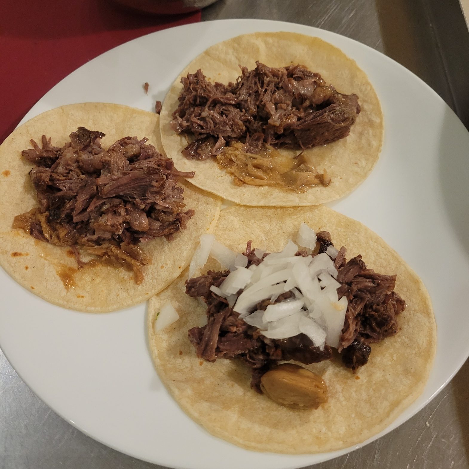 Dressed up as tacos. I suspect this style of beef is what Mexican restaurants serve as barbacoa.